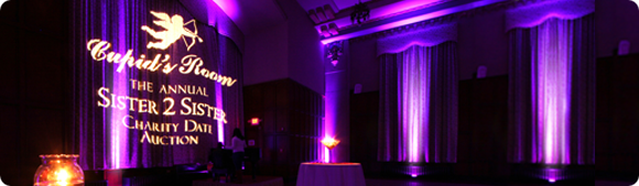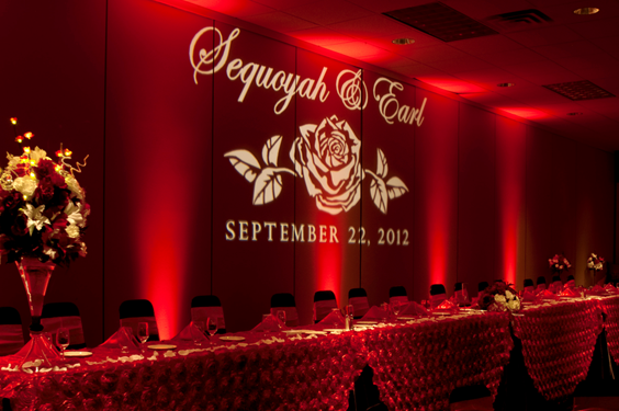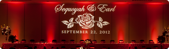 Lighting under a head table, cake or dessert table is a truly stunning way of drawing attention. This is done by simply placing the up lighting fixtures under tables covered with light-weight linens that will allow the light to pass through for a soft, romantic effect. And because LED lights remain cool, there is no risk of them affecting linens or food.