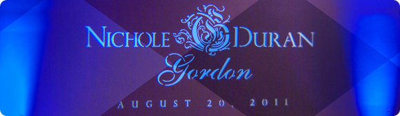 Imagine a beautiful, personalized monogram of the happy couple's initials, or full names, projected behind the head table or on the dance floor at the reception. Traditionally, this kind of custom effect has been unaffordable. But, with new technology that we provide, this special touch can now easily be part of your wedding day!
